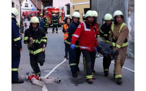 Bil je spokojen petkov večer, po borovniških ulicah so se sprehajali redki pešci, tudi prometa ni bilo kaj prida, ko so Zalarjevo cesto, od Zalarja do Suhadolnika, v nekaj minutah zapolnila gasilska vozila z utripajočimi lučmi. Človek bi težko verjel, a prav na tem najožjem delu vaške ceste se je po dvoriščih, dovozih in stranskih poteh uspelo razvrstiti prav vsem sedmim vozilom treh borovniških prostovoljnih gasilskih društev, ki so na kraj akcije prihitela skorajda sočasno. Gasilci in gasilke, naštel sem jih kar 56, so nemudoma poskakali iz vozil, in medtem ko so se prvi pognali proti "Štekalovemu" hlevu, so drugi mrzlično razvijali cevi in iskali najbližje hidrante, spet tretji so si nadevali dihalno opremo in ognjevarno obleko, nato pa s sekirami zakorakali skozi vhod poslopja, v katerem naj bi domnevni požar ujel kar tri žrtve. Vse so v kratkem prenesli na bližnje dvorišče, kjer jim je težke poškodbe oskrbelo v prvi pomoči izurjeno gasilsko osebje. In tudi požar so uspešno zamejili, da bi se ne razširil na sosednja poslopja v tem delu močno zgoščenega stavbnega fonda Borovnice.