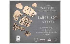 Vljudno vabljeni na otvoritev razstave "LAHKE KOT SVINEC" v petek, 9. 10. 2015 ob 18. uri, v parku pred Bargetovo vilo.