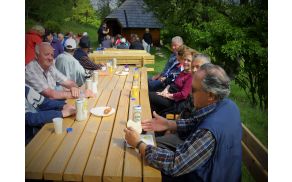 Ko so prispeli na kočo, jih je tam čakala malica. Seveda so se na koči v prijetnem druženju še kar nekaj zadržali, veselo prepevali, se poveselili in nabrali novo energijo za povratek proti domu. Prijetno utrujeni in ponosni, da so zmogli tako dolgo pot, so se v poznih popoldanskih urah vrnili nazaj na svoje domove.