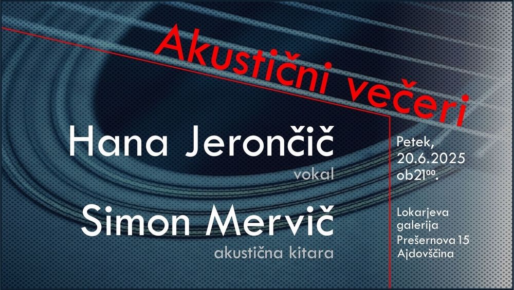 V prvem letošnjem akustičnem večeru nas bosta v svoj svet glasbe popeljala pevka Hana Jerončič, ki jo bo na akustični kitari spremljal Simon Mervič.
