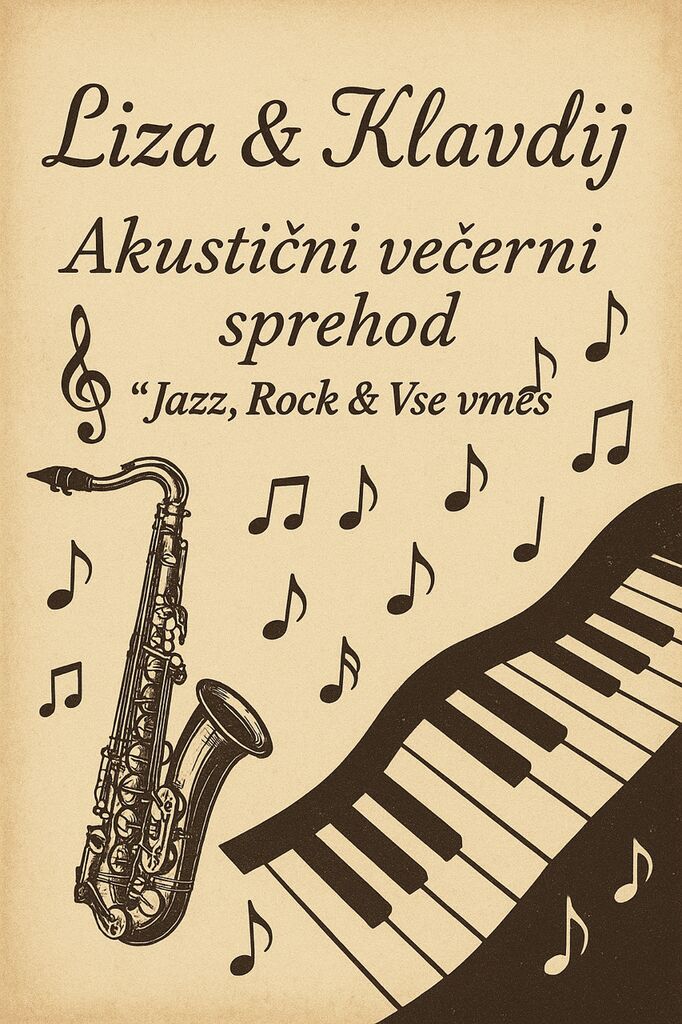 Liza in Klavdij – hči in oče, ki ju povezuje ljubezen do glasbe – vas bosta popeljala skozi večer prežet z melodijami, petjem in pristno toplino.