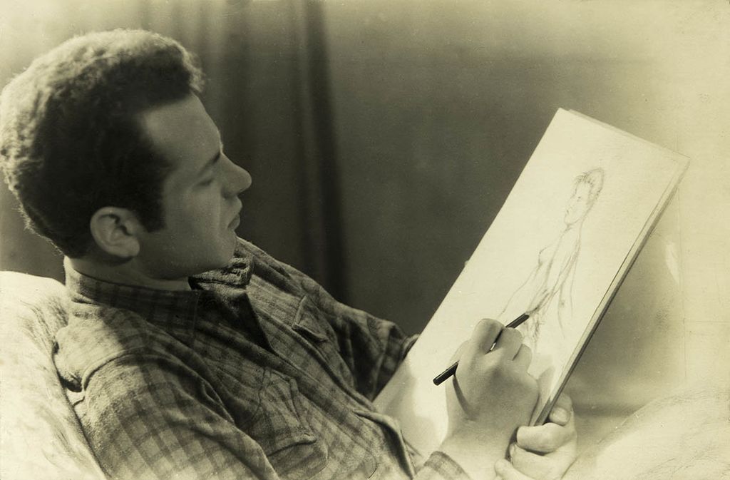 2. Ivo Lenščak pri risanju, ok. 1955, želat. sr. brom, papir, zasebna last