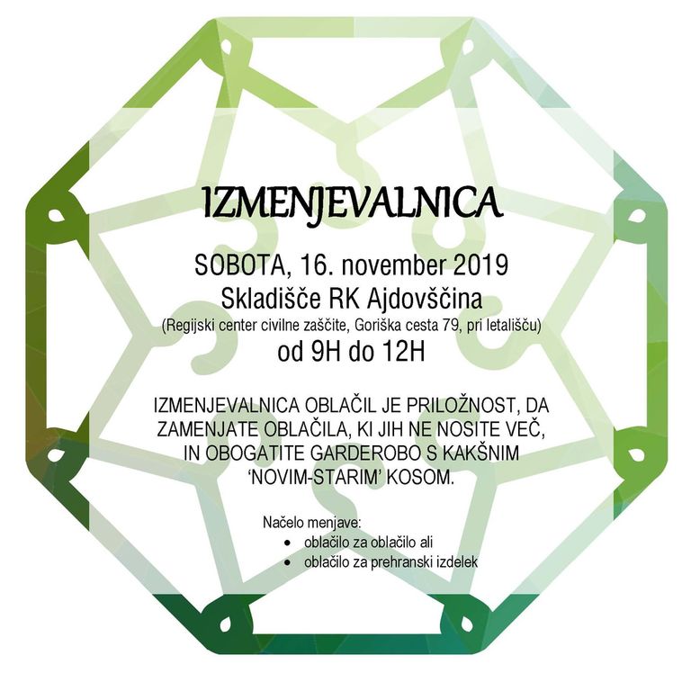 Izmenjevalnica poteka vsako tretjo soboto v mesecu. Lepo vabljeni!