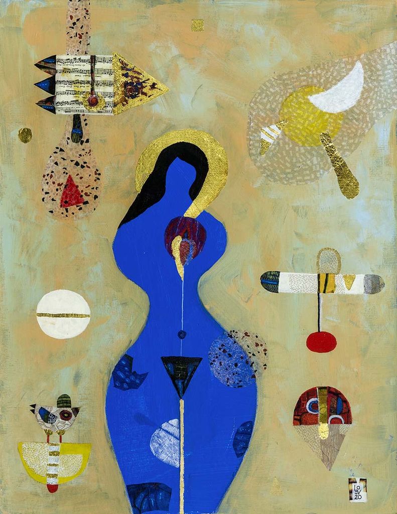 Modra ženska Klara, 2020, mešana tehnika / platno