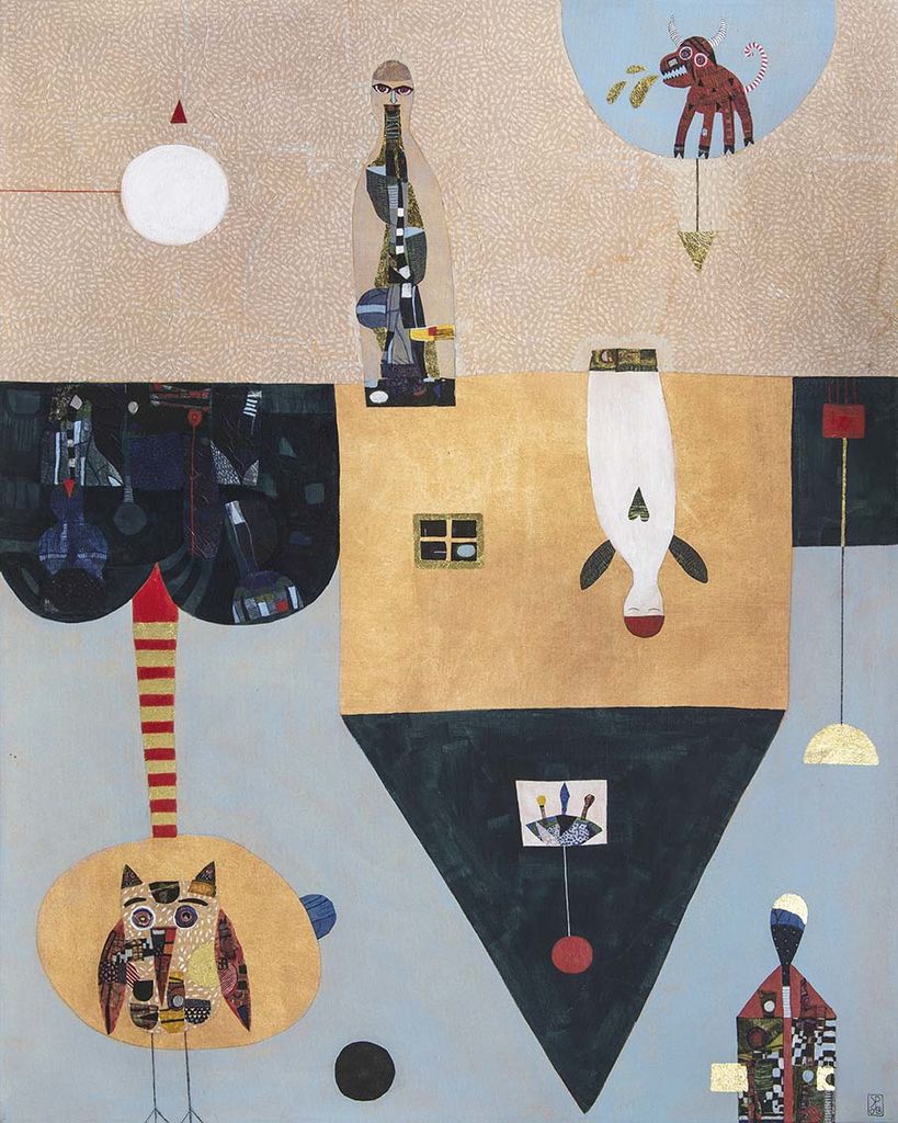 Njen svet se obrne na glavo, 2018, akril, decoupage / platno