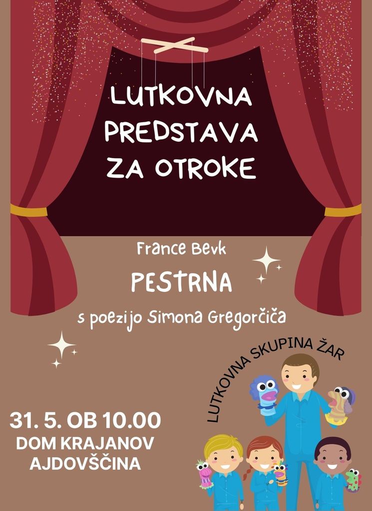 Predstavo bo odigrala Lutkovna skupina ŽAR. V njihovi priredbi povesti Franceta Bevka - PESTRNA pa se bosta prepletala glasba in petje v živo ob poeziji pesnika Simona Gregorčiča.