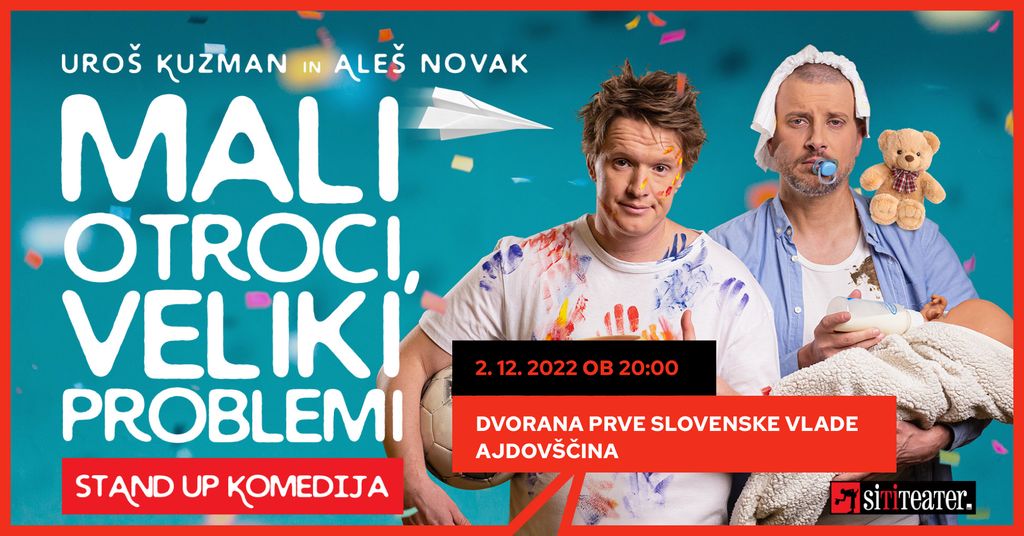 "Mali otroci, mali problemi, veliki otroci, veliki problemi!" je pregovor, ki ga je slišal že vsak starš. Pa je resničen? Je uvertura v starševstvo res preprosta in težavnost tega poklica zraste šele z leti? S temi in podobnimi vprašanji se bosta v stand up predstavi ukvarjala mlada očka, Uroš Kuzman in Aleš Novak, prvi z dvema šoloobveznima pretepačema in drugi s sveže pokakano plenico v rokah.