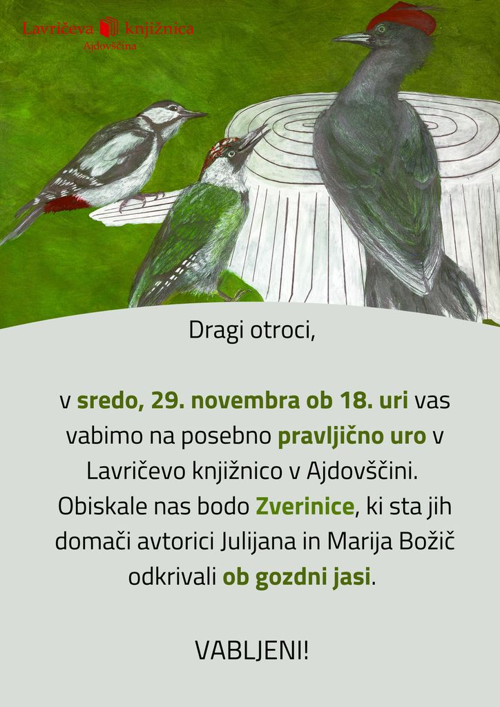 V sredo, 29. novembra ob 18. uri, vas vabimo na posebno uro pravljic v Lavričevo knjižnico v Ajdovščini.