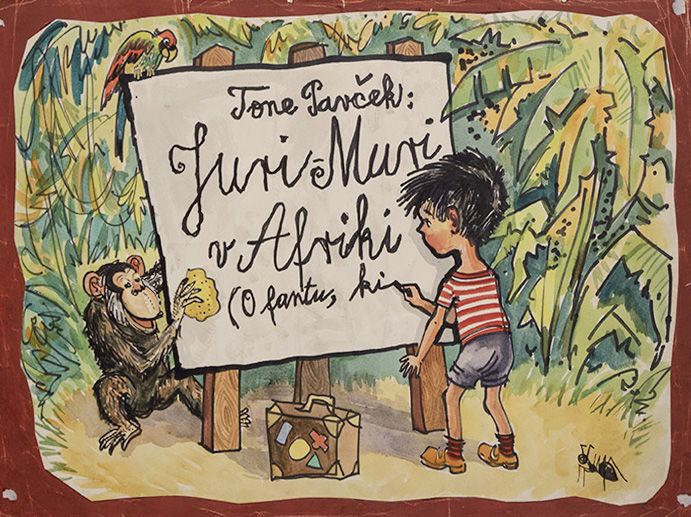 Juri-Muri v Afriki (Tone Pavček), Mladinska knjiga, Ljubljana, 1958, akvarel, tuš, papir
