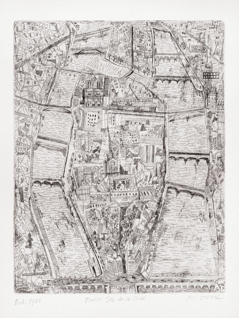Paris Ile de la Cite, 1953, jedkanica, papir