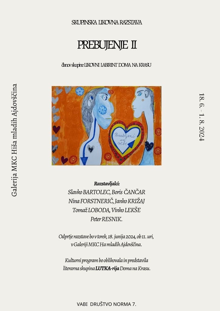Skupinska likovna razstava Prebujenje II ustvarjalcev skupine Likovnilaboratorij Doma na Krasu. Skupimo vodi mentorica Damjane Štrukelj, prof. lik. umet.