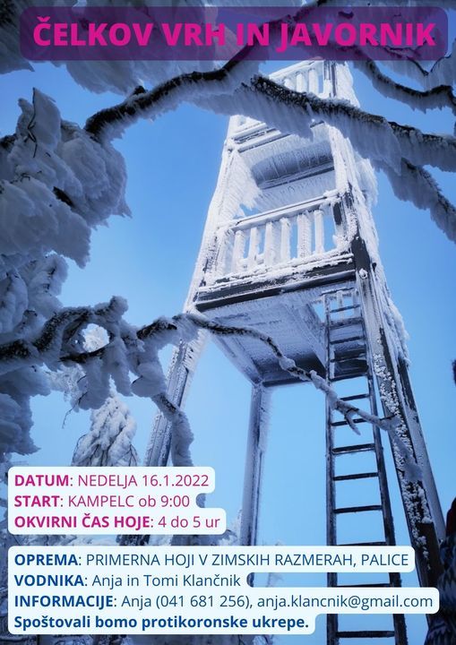 Vabljeni na lahek družinski pohod na Čelkov Vrh in Javornik. Izhodišče je Kampelc, malce naprej od Vodnjaka na cesti od Cola proti Črnem vrhu.