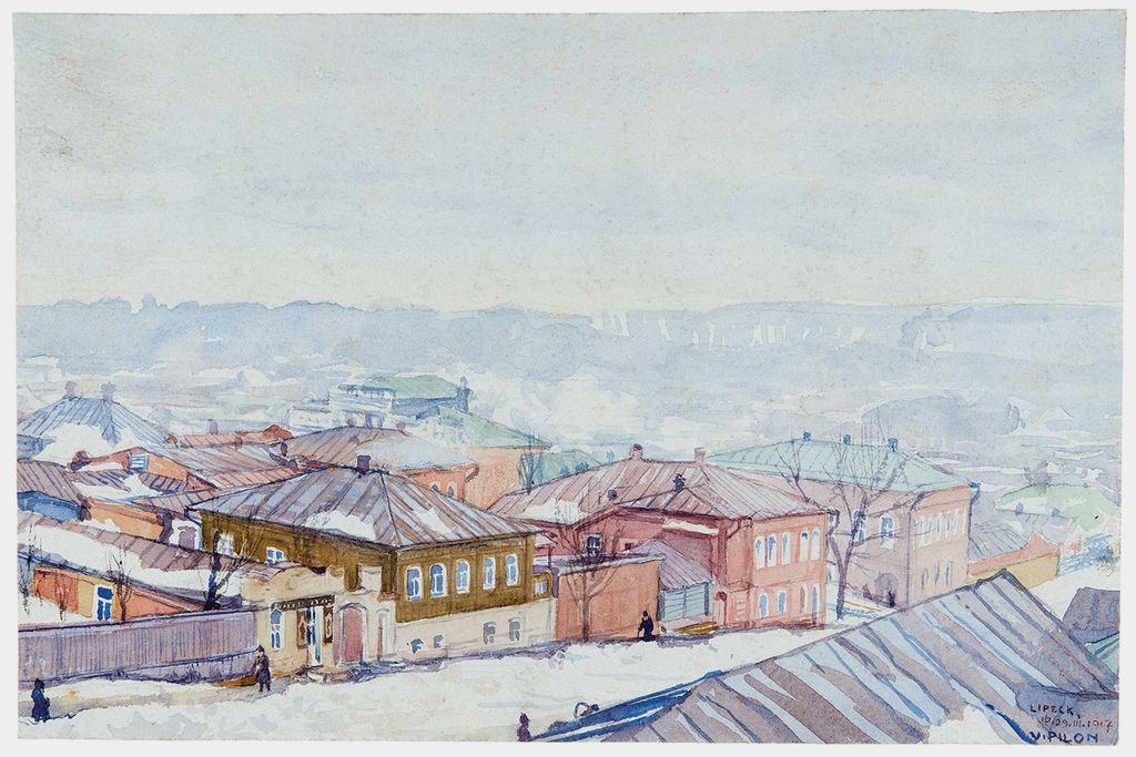 Veno Pilon, Lipeck pozimi, 1917, akvarel na papirju, Pilonova galerija Ajdovščina