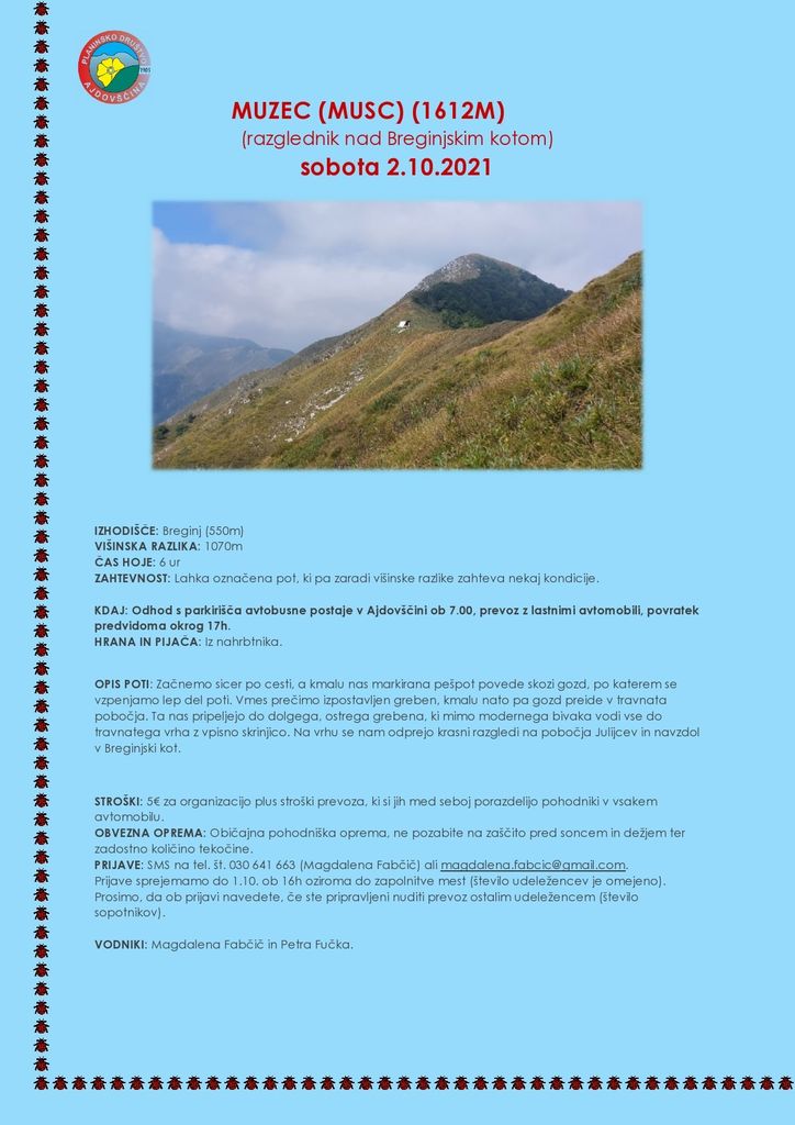 Organizator: PLANINSKO DRUŠTVO AJDOVŠČINA
