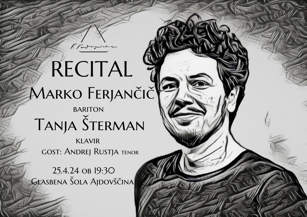 Vabljeni na recital nekdanjega učenca naše glasbene šole. Baritonista Marka Ferjančiča bo pri klavirju spremljala Tanja Šterman, ki je svojo glasbeno pot prav tako začela na ajdovski glasbeni šoli.