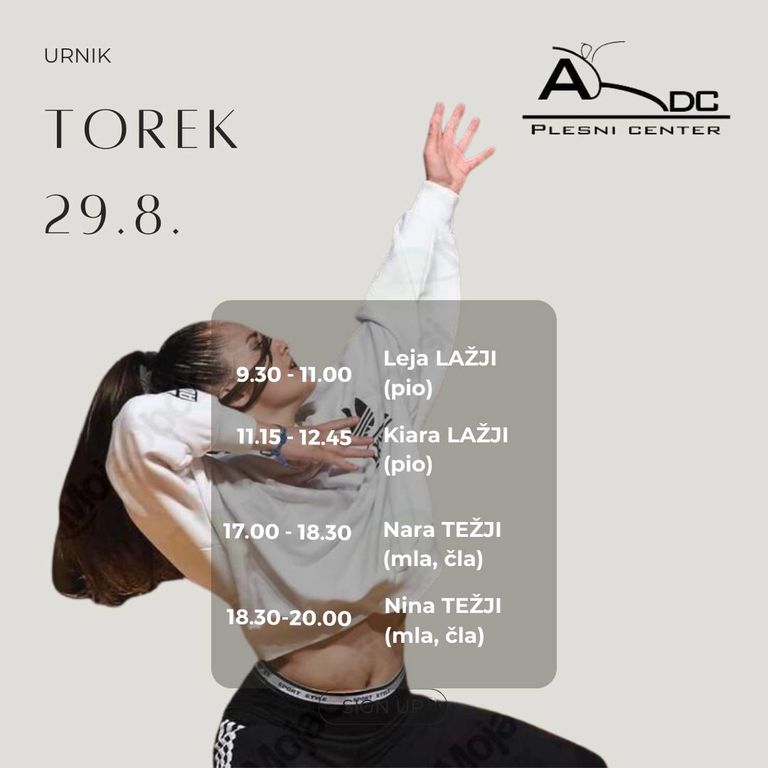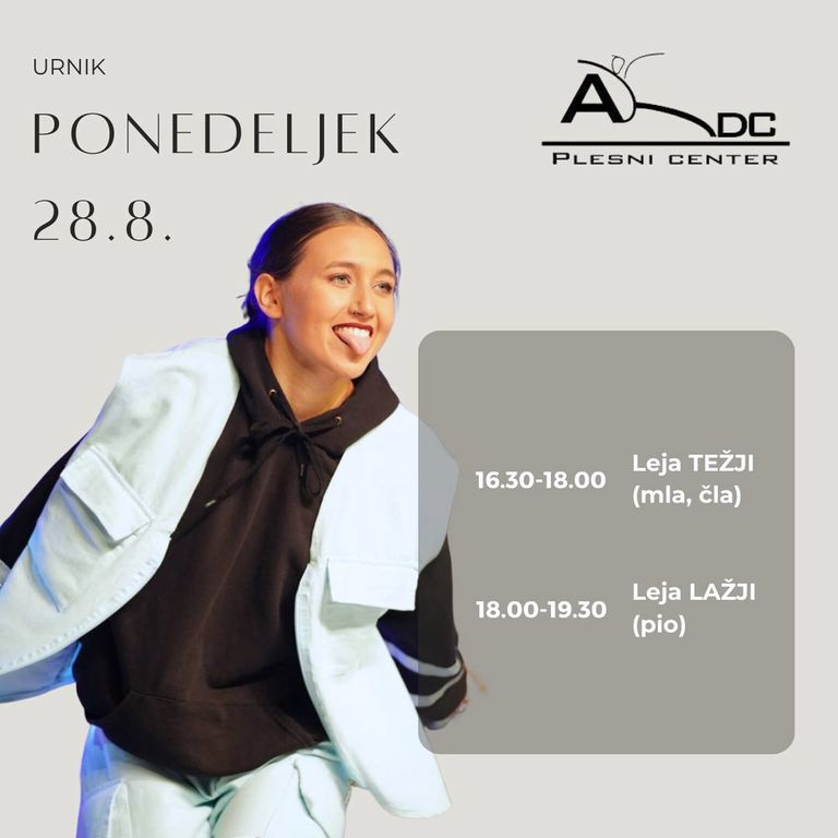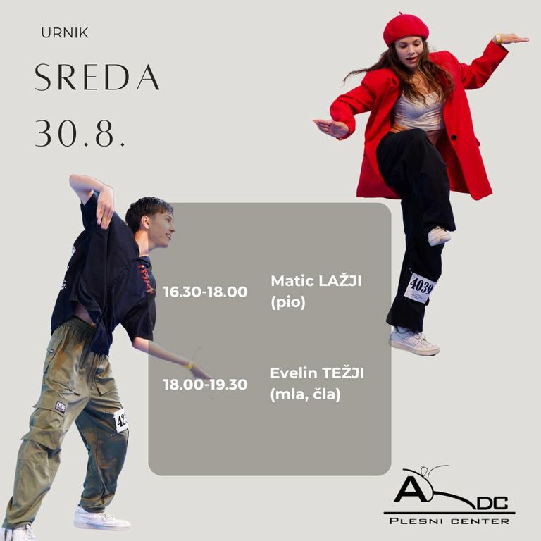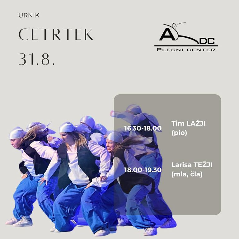 Kontaktni podatki organizatorja: PLESNI CENTER ADC Alice Dance Company, jst.alice@gmail.com, 040 305778.