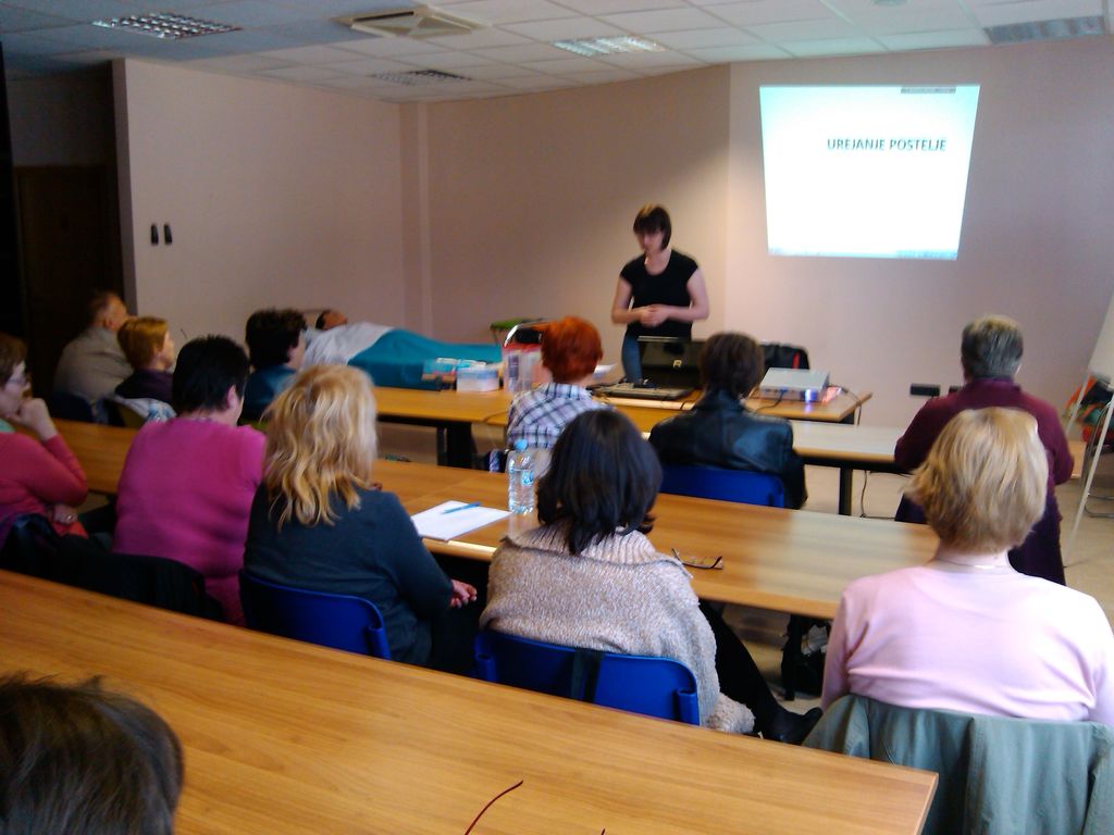 V okviru tečaja bo  teoretično in praktično prikazana nega bolnika (ureditev prostora za bolnika, primerna postelja, postiljanje, preoblačenje bolnika,