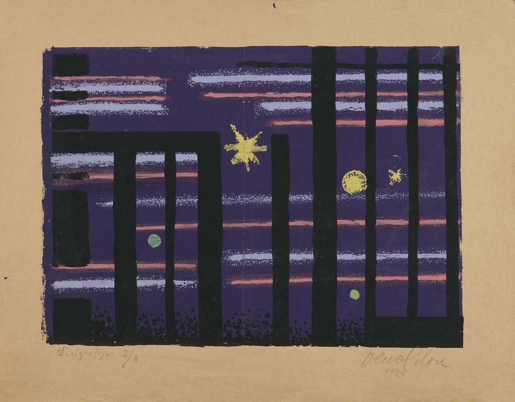 Reprodukcija: Veno Pilon, Nocturno, b. dat., sitotisk, papir, Pilonova galerija Ajdovščina