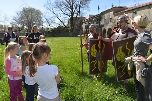 Ob 9:30 bomo začeli v Muzeju v Ajdovščini, kjer nam bodo kratko in jedrnato predstavili življenje in arhitekturo rimske Castre. Vsebina v muzeju bo predstavljena primerno mlajšim otrokom, vendar bodo tudi starši in spremljevalci izvedli veliko novega.Pot bomo nadaljevali po mestnih ulicah. Najprej bomo zavili na Lokarjev drevored, si ogledali ostanke starega pokopališča ob šoli. Sprehodili se bomo do obnovljenega rimskega vodnjaka, kjer nam bo pravi Rimljan razložil, kako so takrat kuhali, kaj so jedi in kako so sploh prišli do vode v vodnjaku. Lahko ga boste vprašali, kakšno je bilo takrat življenje. Ogledali si bomo tloris najslajše rimske hiše, si odgovorili na vprašanje, zakaj so uporabljali obrabne stolpe, ter ugotavljali, kakšna je bila obleka rimskih vojakov in prebivalcev tedanje Ajdovščine. V grajskem obzidju nas čaka prava bitka med rimskimi legionarji. Z Rimljani se boste lahko tudi slikali in uživali. Pot bomo zaključili na sedanji tržnici, kjer so bile nekoč terme. Tu so lepo ohranjeni ostanki term, rimski vojak pa nam bo razložil, kaj so včasih v termah počeli in kako so se kopali. Vabljeni, da se sprehoda po Ajdovskih ulicah udeležite vsi, ki imate radi dobre zgodbe, vas zanima zgodovina in bi radi svojim otrokom na živopisen način predstavili slike iz preteklosti.