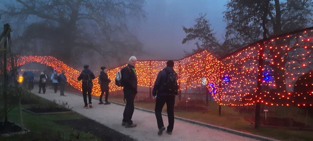 Avtobus nas je peljal v Kamnik, ki velja za eno najlepših srednjeveških mest v Sloveniji s čudovito arhitekturno dediščino. V centru mesta smo se pogreli s toplimi napitki in malico. Za kratek čas so skozi meglo posijali sončni žarki. Nadaljevali smo peš po starem mestnem jedru, polnem znamenitosti. Značilne ozke ulice krasijo srednjeveška in baročna hišna pročelja. Osrednji del predstavlja Mali grad, okrog njega je več trgov in ulic, kamniti vodnjak, frančiškanski samostan s knjižnico, Plečnikovo kapelo … Pot nas je vodila po najlepši ulici Kamnika, Šutni, kjer stoji cerkev Marije brezmadežne z ločenim gotskim zvonikom. Tudi tu je o cerkvi podal zanimive podatke župnik Urbanija. Gospod Bajec, sicer Ajdovc, ki živi v Kamniku, nas je še naprej vodil po Šutni, kjer stoji rojstna hiša generala Rudolfa Maistra in njegov spomenik. Na koncu ulice smo se od njega poslovili in pot nadaljevali po stopnicah, ki vodijo na sedem kilometrov dolgo kolesarsko in peš pot ob reki Kamniški Bistrici do Volčjega Potoka. Prispeli smo prav v času, ko se je že spuščala noč. Vodnik je na vhodu uredil vstopnino, nato smo pričeli s sprehodom med lučkami po označeni poti, ki obiskovalce popelje po parku. V njem sveti na tisoče barvnih lučk, ki predstavljajo različne zgodbe; Božičkova dežela, neskončna pot, lesketajoče jezero, osvetljen slap, pravljični grad, svetlobni tunel … V dobri uri smo se sprehodili po čarobnem in prazničnem arboretumu. Sledila je še nočna vožnja proti domu, nam pa so ostali lepi spomini na četrtkov pohod med lučkami za dušo in srce.