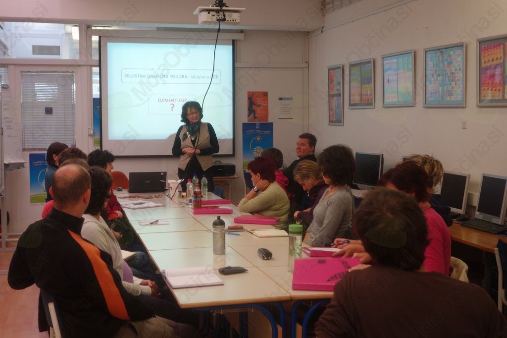 Predavatelja Silva Vovk Kete in Bojan Tomc sta brezposelnim, ki se prvič podajajo na podjetniško pot, podala osnovne informacije o celostni grafični podobi in pravni zaščiti blagovne znamke. Silva Vovk Kete, grafična oblikovalka, ki že 24 let uspešno kreira logotipe, embalaže in celostne podobe za velika in majhna podjetja, je predstavila korake ustvarjanja celostne grafične podobe. Poudarila je, da morata logotip in znak izžarevati konkurenčne prednosti podjetja ter lastnosti izdelka, obenem pa morata upoštevati trende in potrebe tržišča. Bojan Tomc, specialist managementa in poslovni svetovalec, pa je predstavil pretresljiv vidik marketinške vojne, ki se dandanes dogaja. Ravno zaradi tega je izpostavil pomen pravne zaščite imena ter logotipa podjetja.