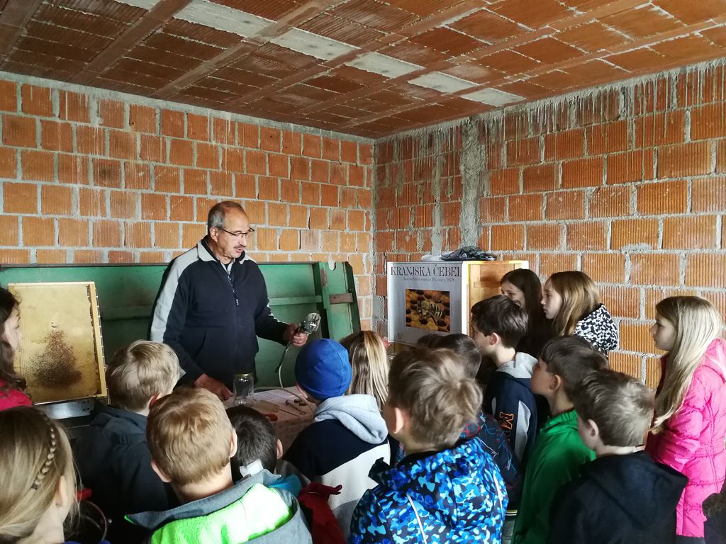 Z učenci, ki so si izbrali ogled čebelarstva, smo se odpravili na domačijo gospoda Franca Krašna. Ta nas je lepo pripravljen pričakal in nam najprej predstavil razvojni cikel čebel, nato pa nam je pokazal še vse pripomočke, ki sodijo k samemu delu s čebelami. Ogledali smo si notranjost panja. Praktično nam je predstavil postopek pridobivanja medu, na koncu pa smo se vsi skupaj posladkali s čebeljimi proizvodi (med, propolis, cvetni prah in medenjaki).
