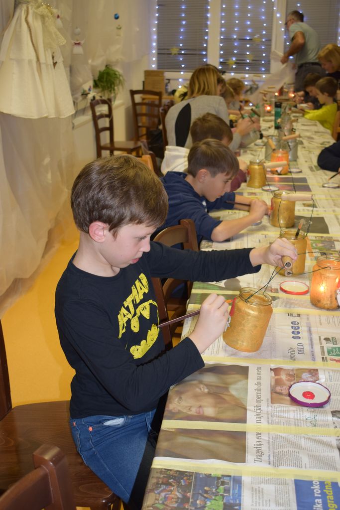 Vrhunec večera je bil seveda prihod Miklavža, ki so ga otroci skupaj s starši v soju svetlečih 'lanternic' zunaj glasno priklicali. Zaključili smo z druženjem ob čaju in pecivu. Z mislijo, kako malo je treba, da nam je skupaj lepo in kako lepo je ohraniti otroško igrivost, tudi ko odrastemo. Ter seveda z upanjem, da nas dobri mož prihodnje leto spet poišče.