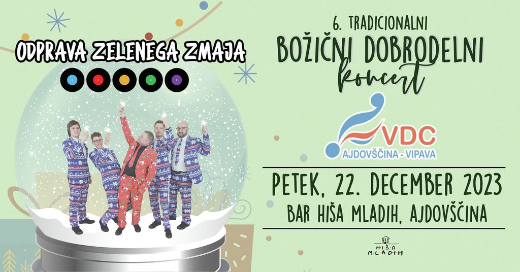 V Varstveno delovnem centru Ajdovščina – Vipava smo se v prvi polovici decembra razveselili klica glasbenikov iz ajdovskega 'banda' Odprava zelenega zmaja. Z novico, da bodo sredstva od prodanih kart za njihov že 6. dobrodelni koncert, letos namenili prav našemu VDC-ju. Prekaljeni 'punk-rockerji', ki slovensko glasbo ohranjajo na svojevrsten način, bodo svojo srčnost, posluh za potrebe drugih in skrb za lokalno skupnost izkazali v petek 22.12.2023 zvečer, z bučnim božičnim koncertom v Palah (Bar Hiša Mladih).