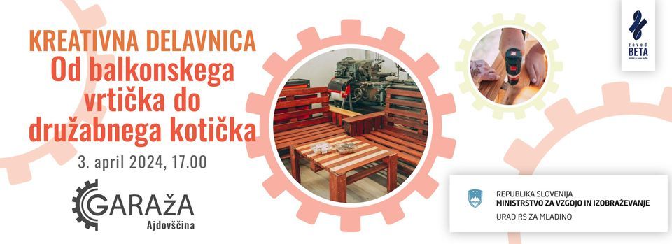Na kreativno druženje vabimo vse, ki želite izdelati praktičen izdelek za svoj dom ali okolico: npr. balkonski vrtiček, korito za rože, količke za gredico, ptičjo hiško, paletno vrtno pohištvo … izdelati darilo za osebni praznik ali pa zgolj popraviti majav stol oziroma kakšen drug kos pohištva. Lahko pa nas pridete samo pogledat. Želimo, da Garažo prepoznate kot vaše okolje, v katerem lahko skupaj ustvarjamo, sodelujemo in razvijamo nove ideje.
