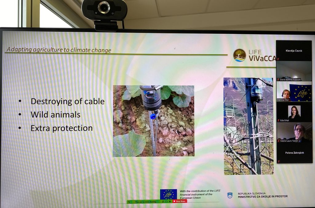 Slušateljem smo predstavili tri rešitve za prilagajanje na podnebne spremembe, ki smo jih razvili v okviru projekta LIFE ViVaCCAdapt. Ključne rešitve, ki smo jih pripravili v sklopu projekta, že kažejo rezultate, to so: Strategija prilagajanja kmetijstva na podnebne spremembe v Vipavski dolini za obdobje 2017 – 2021, SPON – sistem za podporo odločanju o namakanju ter pilotna zasaditev zelene protivetrne zaščite. Udeležencem smo zavrteli tudi promocijski film, ki prikazuje pozitivne vidike zelenih protivetrnih zaščit, ki je bil sprejet z navdušenjem. Odzivi udeležencev so bili zelo pozitivni, še posebej jih je zanimala prenosljivost rezultatov projekta LIFE ViVaCCAdapt v druge evropske države. Predvsem predstavnico iz Madžarske, ki v okviru evropskega programa Obzorje 2020 sodeluje pri izvajanju projekta s sorodno vsebino, je zanimalo, kako so uporabniki sprejeli sistem SPON in ali obstaja možnost prenosa sistema na Madžarsko.