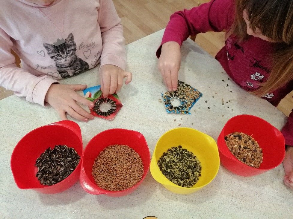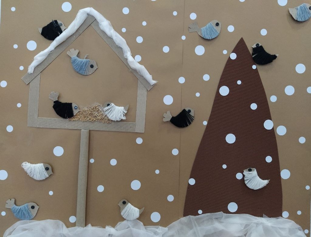 V mesecu januarju smo se v skupini Zvezdice v Vipavskem Križu na pobudo otrok pogovarjali o različnih živalih v zimskem času. Otroci so izkazali veliko zanimanje za življenje ptic v zimskem času, zato smo na to tematiko prebrali kar nekaj knjig: 'Brin in ptičja hišica', 'Zimska pesem', 'Jutranji zbor', 'O fantu, ki je imel rad ptičke' … Naučili smo se slovensko ljudsko pesem 'Sinička' ter iz lepenke izdelali prav posebne ptičke za dekoracijo igralnice (izrezanim pticam smo iz volne naredili topla oblačila, da jih ne bo zeblo). Otroci so ob fotografijah hitro usvojili poimenovanje posameznih ptic in ločevanje ptic na selivke in stalnice.