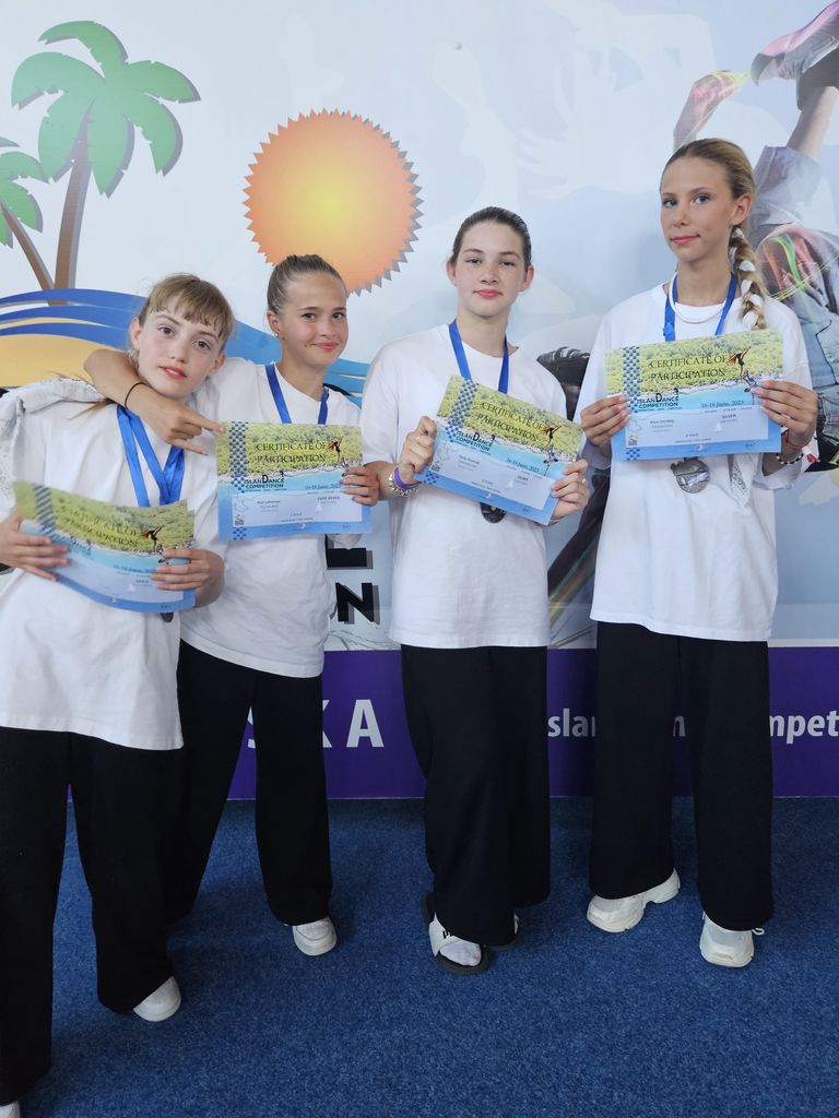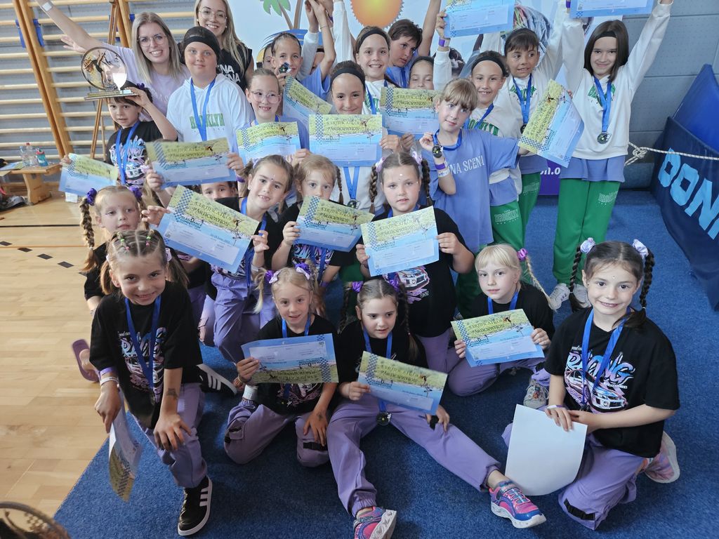 Samo plesno tekmovanje se je začelo v nedeljo z našo najmlajšo skupino Mini Dynamites, ki se je odlično predstavila in si priplesala zmagovalno stopničko. Poleg njih so se v zlate barve obarvali še skupina Cool kids, pionirski par Tinkara in Sara, mlajša mladinska skupina Six Wix ter mladinski par, ki ga sestavljata Lara in Asja. V srebro so se v različnih kategorijah odeli še: solistka v pionirski kategoriji Sofija, solistka med mlajšimi mladinkami Lara, skupina Tik Tak Crew ter mladinska formacija Let's pray. Bron pa sta si priplesala tudi mladinski par Tjaša in Kiara ter mladinska mala skupina Kaos. Za las so zgrešili zmagovalni oder pionirska frmacija Flex ter naše solistke Kiara, Asja in Pia.