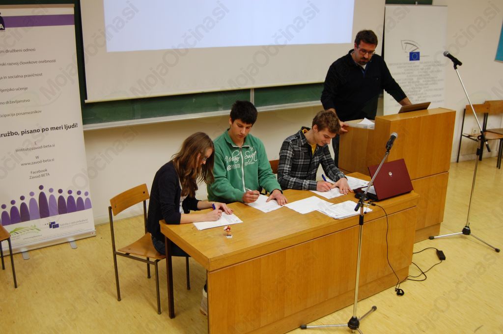 Na tekmovanju so dijaki soočili svoja mnenja in oblikovali stališče o aktivnem političnem udejstvovanju mladih in udeležbi mladih na volitvah s priporočili za prihodnost. Pri tem so se potegovali za glavno nagrado – obisk Evrošole v Evropskem parlamentu v Strasbourgu. Po skoraj štiriurnem zasedanju mladih poslancev simuliranega parlamenta je komisija odločila, da v Strasbourg odpotujejo dijaki Srednje šole Veno Pilon iz Ajdovščine pod vodstvom profesorja Matjaža Trošta.