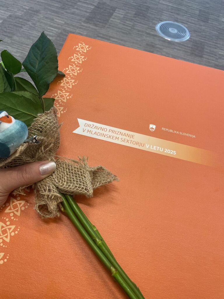 V torek, 25. novembra 2025 je v Ljubljani potekalo državno srečanje mladinskega sektorja 2025, ki sta ga organizirala Inštitut za razvoj družbene odgovornosti in Urad Republike Slovenije za mladino. Dogodek je bil izjemno pomemben za vse, ki delujemo na področju mladinskega dela, njegov vrhunec pa je bila podelitev štirih državnih priznanj za izjemne dosežke na področju mladinskega sektorja.
