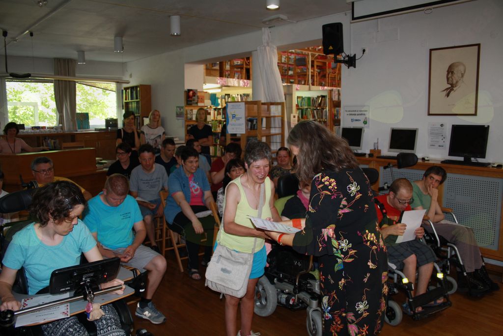 V Lavričevi knjižnici smo že drugo leto v sodelovanju z obema enotama VDC v Ajdovščini in Vipavi izpeljali bralni projekt Knjigožur. Septembra smo v knjižnici izbrali in pripravili štiriindvajset knjig različnih zvrsti: leposlovje, stroka, poezija in jih v posebnem zabojčku ponudili v branje varovancem obeh enot. Pripravili smo tudi nekakšen delovni zvezek, v katerega so pridni bralci zapisali ali pa narisali svoje vtise o prebranem. S temi knjigami smo se srečevali tudi na naših rednih mesečnih bralnih srečanjih. In kot se spodobi, smo naš Knjigožur konec maja tudi svečano zaključili. Tokrat so varovanci VDC skupaj s spremljevalci prišli v našo knjižnico, kjer jim je gledališče 'Bičikleta' pripravilo predstavo 'Bonton za male lumpe'. Brigita Leban je kot varuška Lucija pripovedovala o dogodivščinah z otroki, ki jih je skozi svojo kariero varuške varovala. Zaključili smo s podelitvijo priznanj vsem sodelujočim, in tudi mentoricama Matejki Štrukelj in Snežani Marc, ki sta tako v Ajdovščini kot v Vipavi varovance spodbujali k branju.