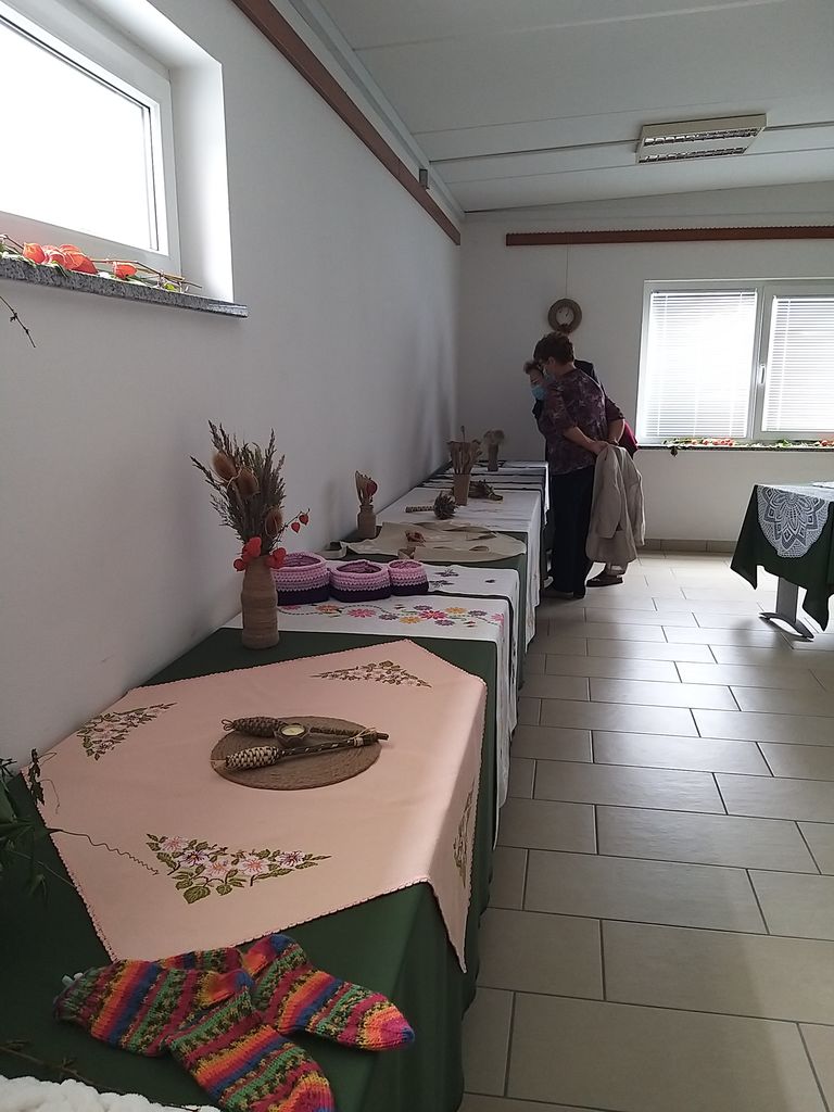 Vsaka zase je ustvarjala v varnem zavetju doma. Kljub temu, da smo imele več prostega časa, izdelkov ni bilo, kot bi pričakovali. Sredini večeri, poleg druženja in klepeta, pridelajo tudi več lepih ročno izdelanih prtov, drobnih okraskov, nakita, pletenin ...