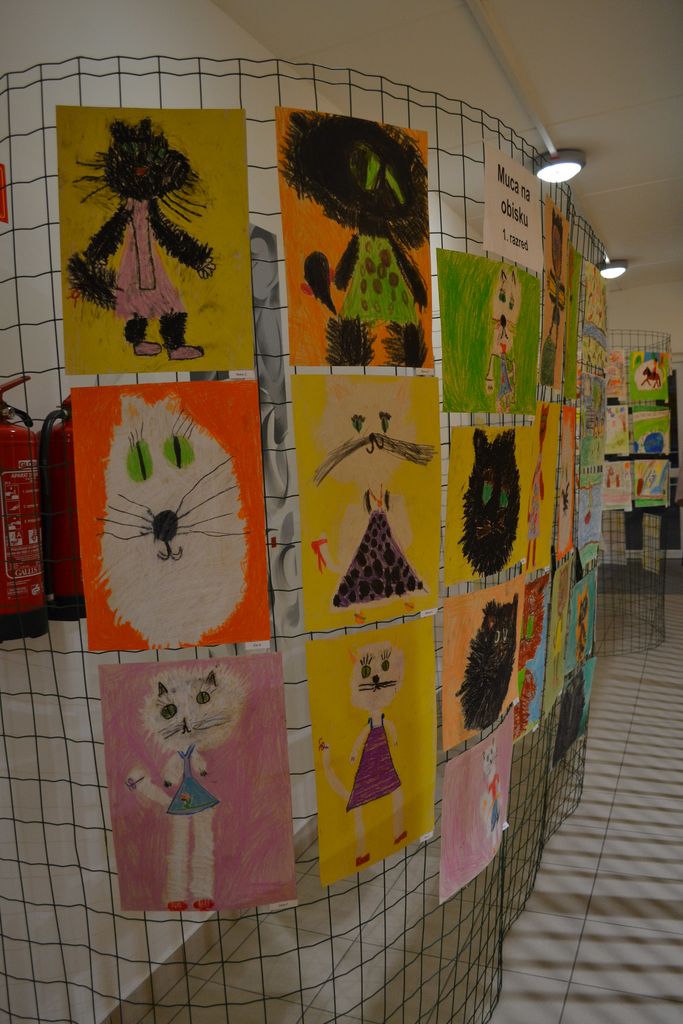Razstavo smo postavile, mačke so jo popestrile in izvabile odobravanje obiskovalcev. Vsi učenci podružnične šole Lokavec s svojimi mentoricami so prispevali risbice na temo mačke in obogatili razstavo.