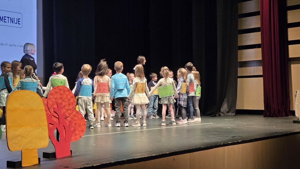 Poseben čar dogodku so dodali nastopi otrok. Najprej so nas navdušili malčki iz Rumenih metuljev z ljudskima izštevankama 'En kovač' in 'Ančko Bančko' pod budnim očesom vzgojiteljic Ane Stanonik in Kaje Kobal. Sledil je čudovit nastop otroškega pevskega zbora Ob Hublju, v katerem so otroci stari od 4 do 6 pod vodstvom Melite Rožič in ob spremljavi Aneje Čuk na kitari zapeli tri pesmi 'Balonček in sonček', 'Poglejte tale kljunček' in 'Prijatelji'. Skupina Modre pike, pod vodstvom Maje Lešnjak in Janje Posega, je navdušila z izštevanko Mojce Robič. Otroci iz rumenih pik pa so se predstavili z recitacijo 'Barve dreves' Miroslava Košute pod vodstvom vzgojiteljic Anje Kotnik in Sandre Vodopivec.