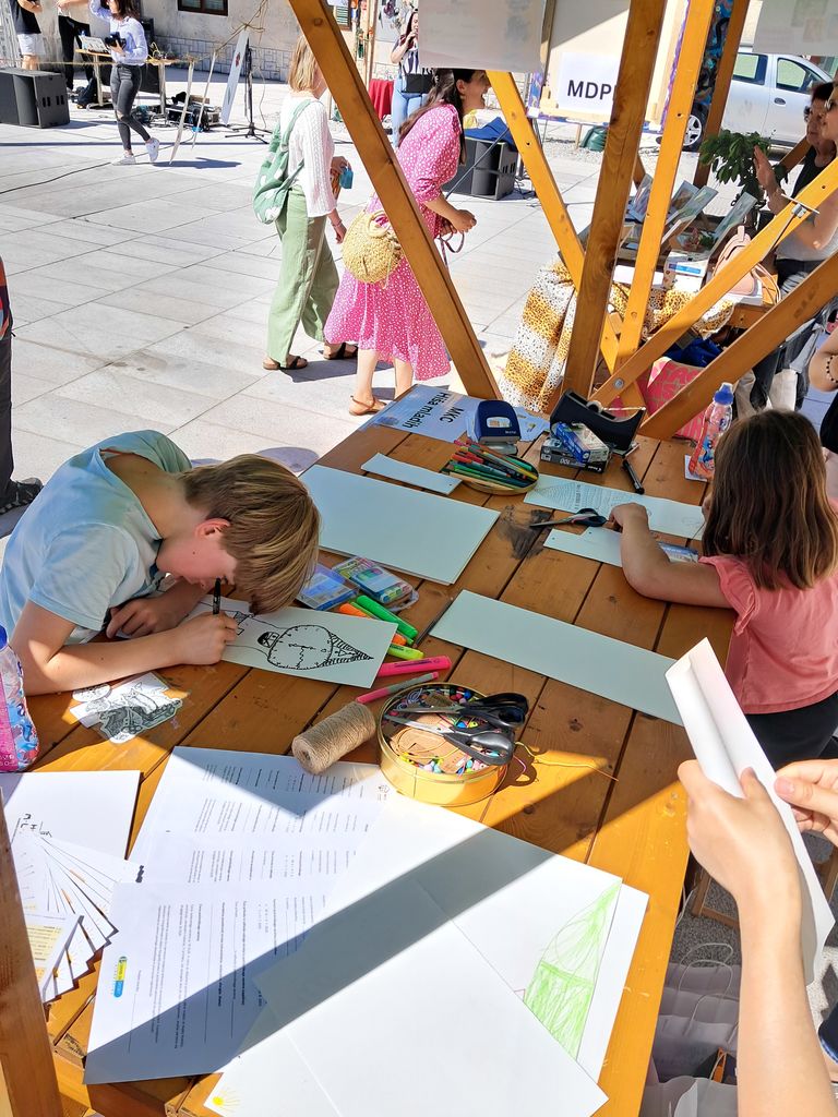 Posebno mesto na dogodku je imela tudi ustvarjalnica za otroke, ki jo je z veliko topline in ustvarjalne energije vodila INES B. MOHORIČ. Najmlajši obiskovalci so se lahko prepustili domišljiji in sodelovali v ustvarjanju unikatnih kazal za knjige.