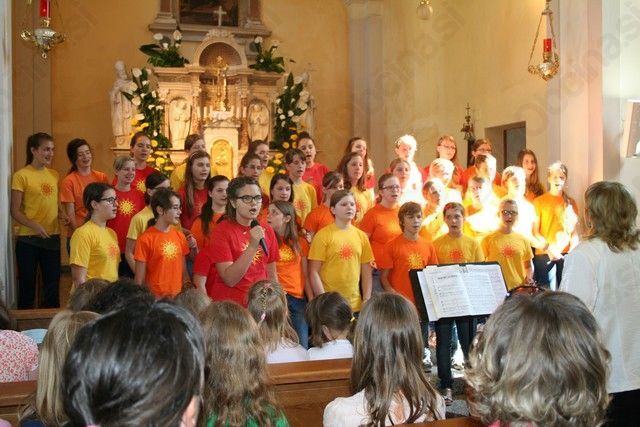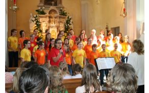 Nastop se je začel s predstavitvijo kraljice jezikov, latinščine, in nadaljeval s črnskimi duhovnimi pesmimi ter z dvema slovenskima ljudskima skladbama. Zborovodkinja, ki je z izjemnim pedagoškim čutom izvrstno povezovala koncert, je še bolj presenetila, ko je sama zapela ljudsko pesem s Tolminskega - Ribo Faroniko. Sledilo je še nekaj sodobnih slovenskih pesmi, ki pojejo o miru, prijateljstvu in ljubezni.