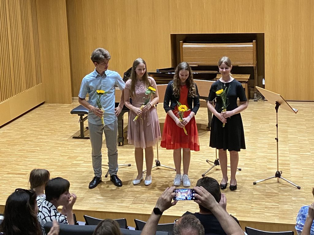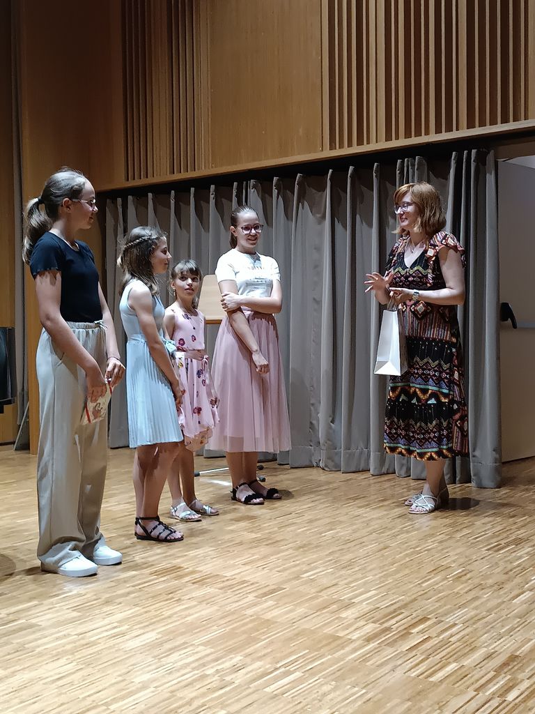 V prvem junijskem tednu so svoj zaključni nastop najprej pripravili klarinetisti iz razreda Neže Jelušič. Ema Kete in Maja Curk sta končali šesti razred, Ana Bela Bajec in Lovrenc Matija Rovan pa osmega. Vsi so igrali ob klavirski spremljavi Divne Jandrić, sestavili so tudi kvartet, Lovrencu Matiji pa se je v duu pridružil še petošolec David Pregelj.