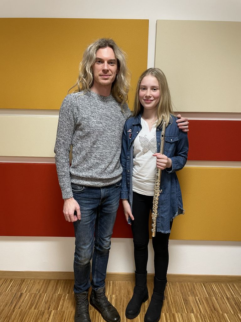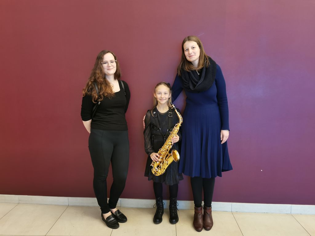 Saksofonistka Neža Polanc Golob iz mojega razreda je prav tako ob boku učiteljice Kristine Gec Morelj prejela zlato plaketo za doseženih 95,33 točk.
