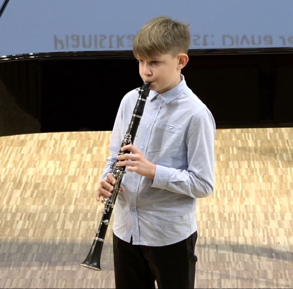 Klarinetist David Pregelj iz razreda učiteljice Neže Jelušič je ob spremljavi učiteljice Divne Jandrić dosegel 92,67 točk in srebrno plaketo.