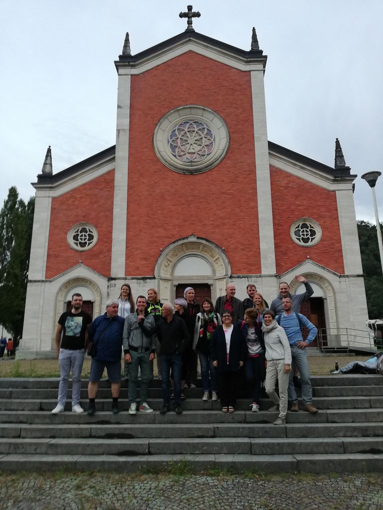 Pot je ob poslušanju zgodb in prigod iz bogate Marinkove zakladnice hitro minila, na italijanski strani pa nas je v vasi Klobučari v svoji oštariji že čakal Massimo z odličnimi njoki. Sledil je spust v dolino potoka Rieke, kjer smo se v vasi Hlodič pri zakoncih Rutar z zanimanjem zatopili v bogato etnografsko zbirko in raznorazne razstavljene predmete ter starine, ki so našle mesto v njunem družinskem muzeju, nas pa popeljale v neke druge čase. Posedanje na jesenskem soncu ob naravnem tolmunu v neokrnjeni naravi (in skok pogumnih v osvežilno vodo) je bilo žal prekratko, pot nas je namreč že vodila v Špeter Slovenov ob reki Nadiži, kjer nas je sprejel Jurij Bankič, pomemben kulturni delavec med beneškimi Slovenci.