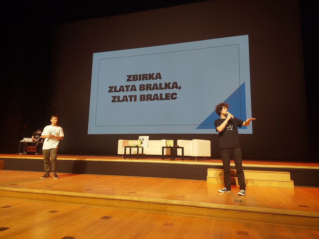 Nato smo obiskali osrednjo zaključno prireditev za zlate bralke in zlate bralce, ki jo je pripravilo Društvo Bralna značka – ZPMS in je potekala v Gallusovi dvorani Cankarjevega doma, kjer se je zbralo skoraj 1.300 zlatih bralcev in njihovih mentorjev iz vse Slovenije. Prireditev je vodil Boštjan Gorenc Pižama, ki se je pogovarjal z urednicama knjige Ireno Matko Lukan in Tanjo Komadina, program sta sooblikovala glasbena gosta UM & KUNA. V imenu Društva Bralna značka Slovenije – ZPMS je zbrane pozdravila generalna sekretarka Manca Perko, ki je prebrala tudi pozdrave predsednika Marka Kravosa. Mladim bralcem so čestitali še minister za vzgojo in izobraževanje dr. Darjo Felda, predsednica Zveze prijateljev mladine Slovenije Darja Groznik, direktor Prodaje poslovni trg v družbi Telekom Slovenije Primož Kučič in direktorica Javne agencije za knjigo RS Katja Stergar.