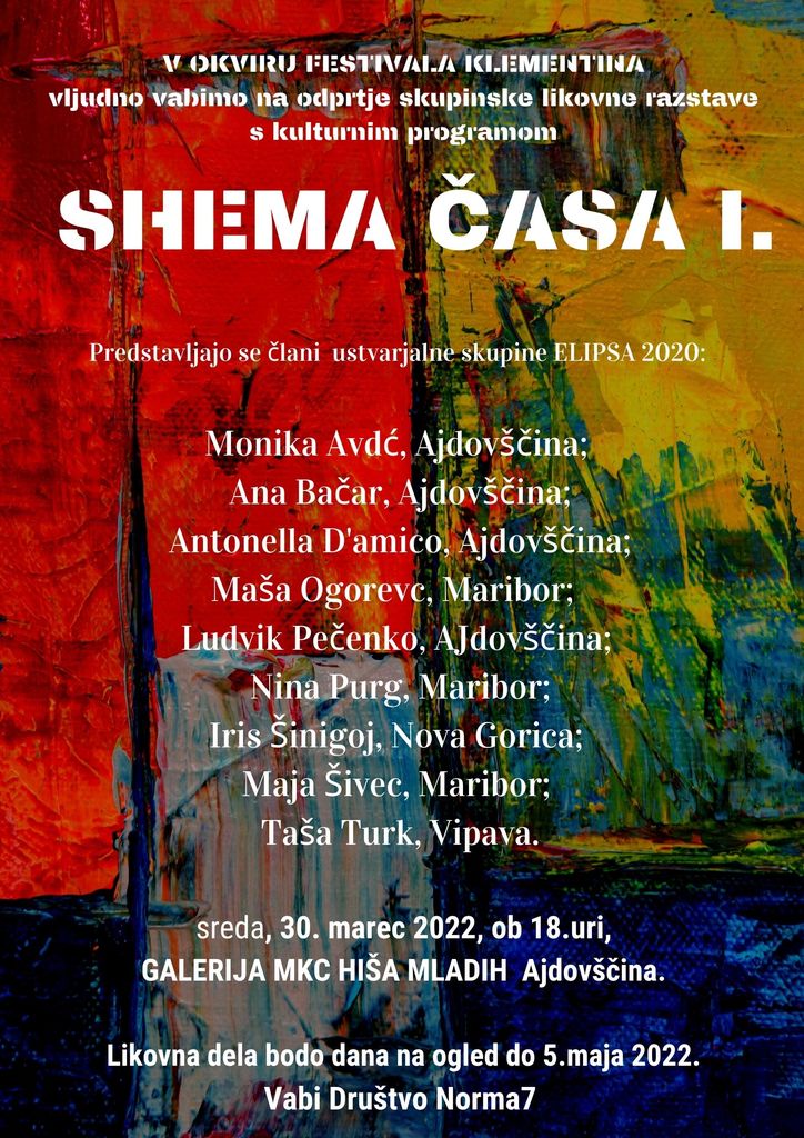 Društvo Norma7 vabi na odprtje likovne razstave Shema časa I, članov ustvarjalne skupine ELIPSA 2020: