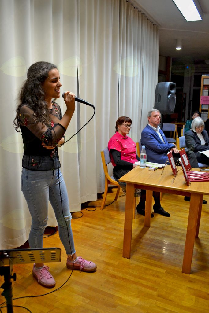 nastopala na vaškem odru, zavistna, ker Orglarja, daljšo pesem, dobila je sošolka.