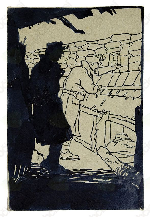 Prvi del razstavnega projekta, ki ga je pripravila kustosinja Nataša Kovšca, obravnava Pilonove risbe s fronte in tista likovna dela, ki jih lahko vsebinsko povežemo z začetkom prve svetovne vojne.