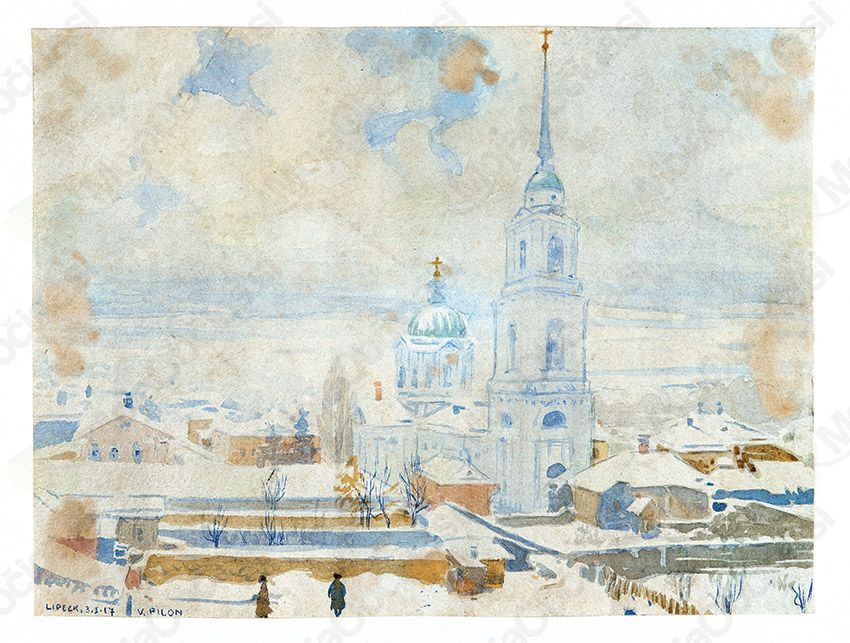 Drugi sklop razstave, katerega avtorica je Tanja Cigoj, predstavlja Pilonovo ustvarjanje v ruskem ujetništvu v Lipecku, malem ruskem letoviškem mestu, kjer je doživel in preživel boljševiško revolucijo ter konec vojne. Rusija ga je povsem prevzela s svojimi barvitimi nasprotji, s svojo veličino narave in z neizmerno prostranostjo - nastajale so krajine in vedute mesta, ujete v raznotere barve letnih časov ali vremenskih razmer in zaznamovane z živahno paleto, idilično atmosfero in elegantno linijo.