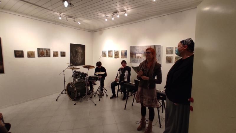 Večer so z avtorsko glasbo obogatili: Maja Sajovic - harmonika, Oskar Ličen - violina, bobni in Polona Kunaver Ličen - klavir. Umetnico je v sproščenem pogovoru predstavila mag. umetnosti Polona Kunaver Ličen. In ob koncu smo bili deležni še kulinaričnega razvajanja ob skrbno aranžiranih dobrotah, ki so jih pripravili učenci Osnovne šole Šturje pod mentorstvom Petre Ušaj.